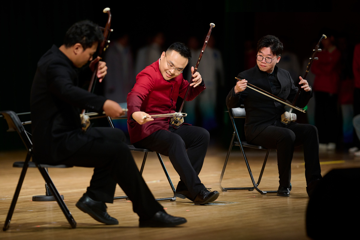 长号独奏《查尔达什》、二胡合奏《战马奔腾》激越奔腾、弓管齐鸣。异域风情与东方气魄在此碰撞,长号奏出热烈的舞步,吉普赛的奔放随旋律飞扬,二胡齐鸣弓弦间迸发出排山倒海般的民族力量,两股激昂的声浪,点燃这个夜晚的最高潮 。