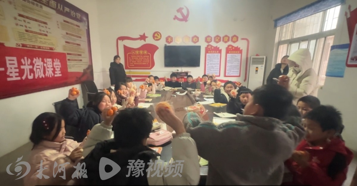 为了鼓励孩子们来村委会学习,翟华林自费购买了几箱砂糖桔,还有一些雪饼等小零食,发给孩子们。工作之余也会在课间跟孩子们一起玩耍,跟大家打成一片。