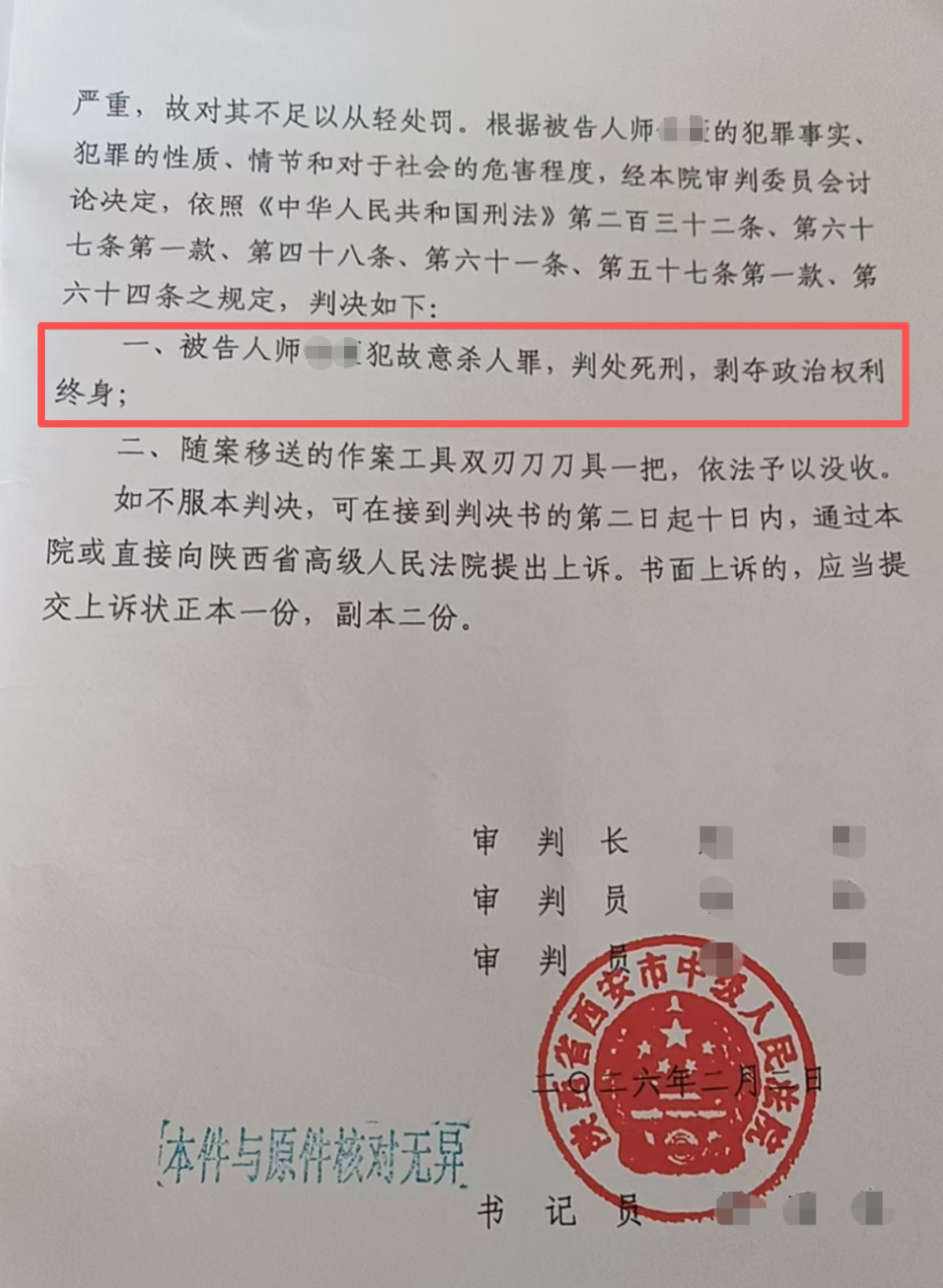 2月10日,大河报《看见》记者从被害人家属处获悉,引发社会关注的“陕西女护士被男友杀害”案已作出一审判决。西安市中级人民法院以故意杀人罪,判处被告人师某某死刑,剥夺政治权利终身。