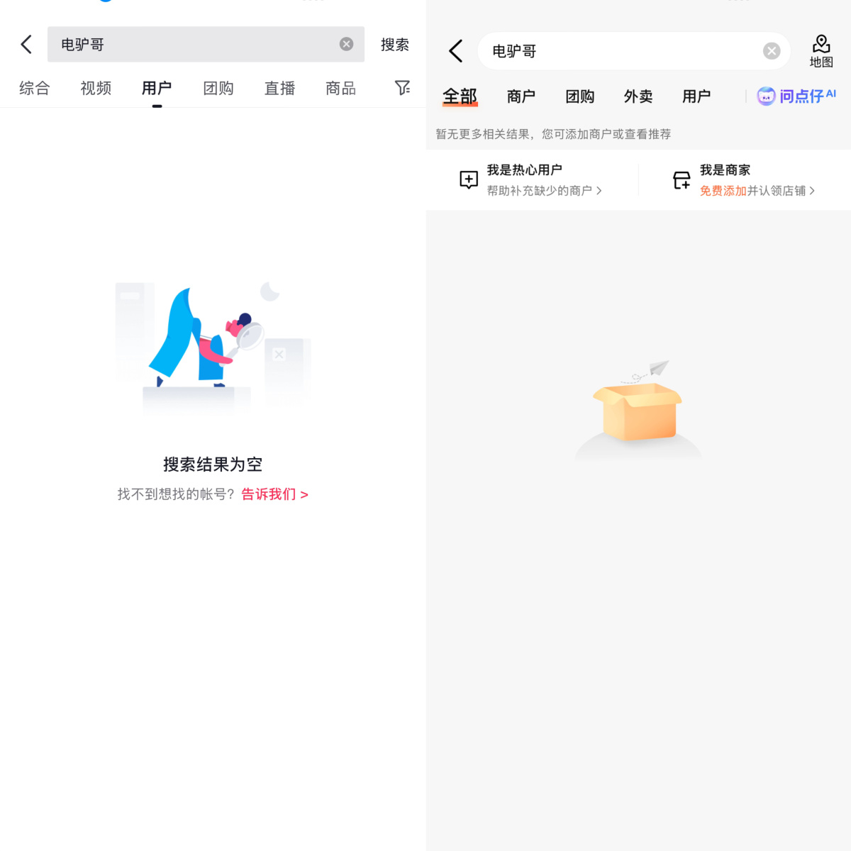 记者搜索发现,目前某直播平台、本地生活消费平台均无法查到“电驴哥”的相关用户信息。