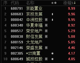 【大河财立方消息】3月17日,房地产板块盘初冲高,京能置业、京投发展、中洲控股涨停,华夏幸福、大龙地产、北辰实业、荣安地产等跟涨。