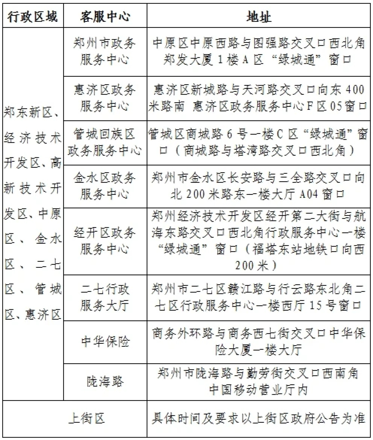 绿城通客服中心位置及上街区新办安排