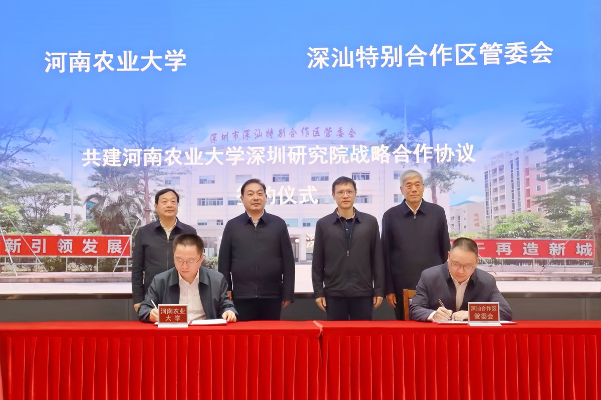 3月17日,河南农业大学与深圳市深汕特别合作区举行共建河南农业大学深圳研究院战略合作协议签约仪式。校党委书记岳杰勇,校长、中国工程院院士周卫,中国工程院院士康相涛,副校长张朝阳,深圳市深汕特别合作区党工委书记吴曲波,区党工委委员、组织人事局局长彭戈出席仪式。河南农业大学与深汕特别合作区相关职能部门负责人参加仪式。
