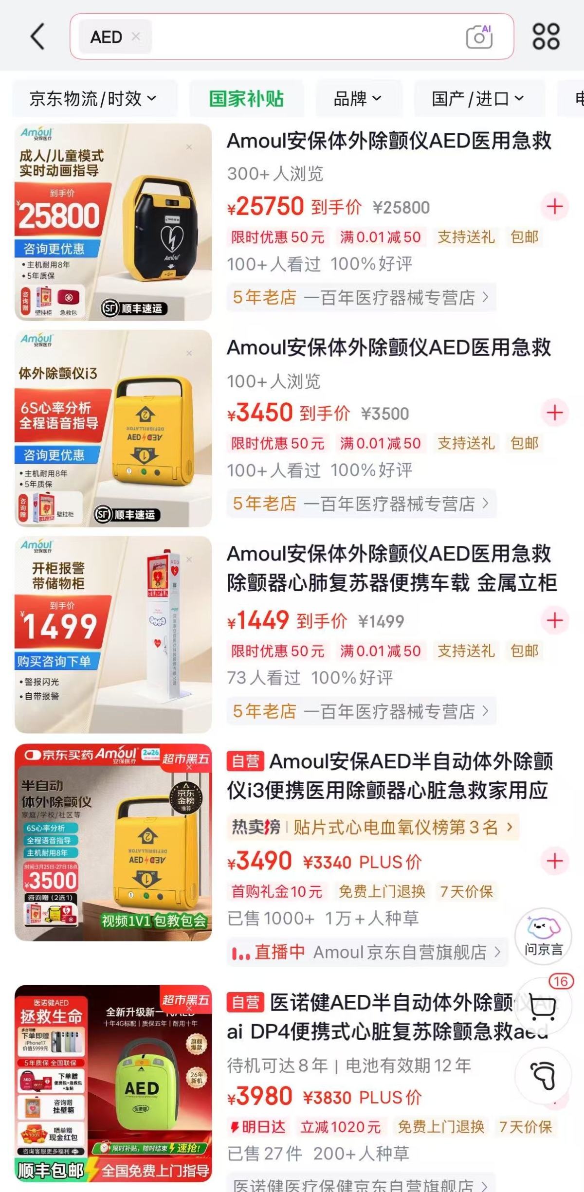 他透露,根据业内情况,如今国内几家医疗器械大厂生产的AED设备,价格已经下探到了数千元的区间。这些几千元的国产设备,在核心的自动心律分析、语音操作提示、智能放电等基本功能上完全能够满足日常应急需求,技术也已经非常成熟。
