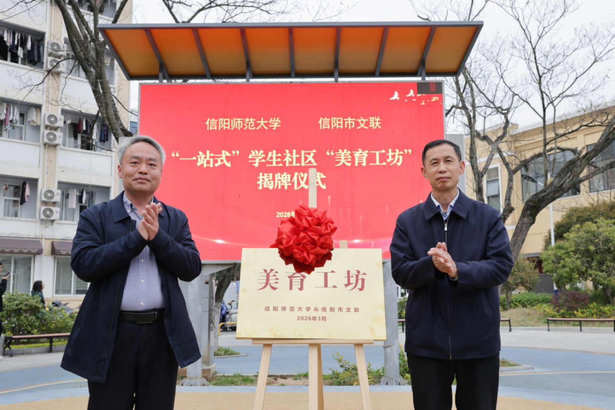 3月26日,信阳师范大学2026年“春美师大・向美而生”主题美育暨“一站式”学生社区“美育工坊”揭牌仪式顺利举行。活动以美为桥,以文为媒,信阳师范大学联合信阳市文学艺术界联合会,共同搭建校地协同育人新平台,推动优秀文化与非遗艺术走进校园,助力青年学子“五育”协同发展。