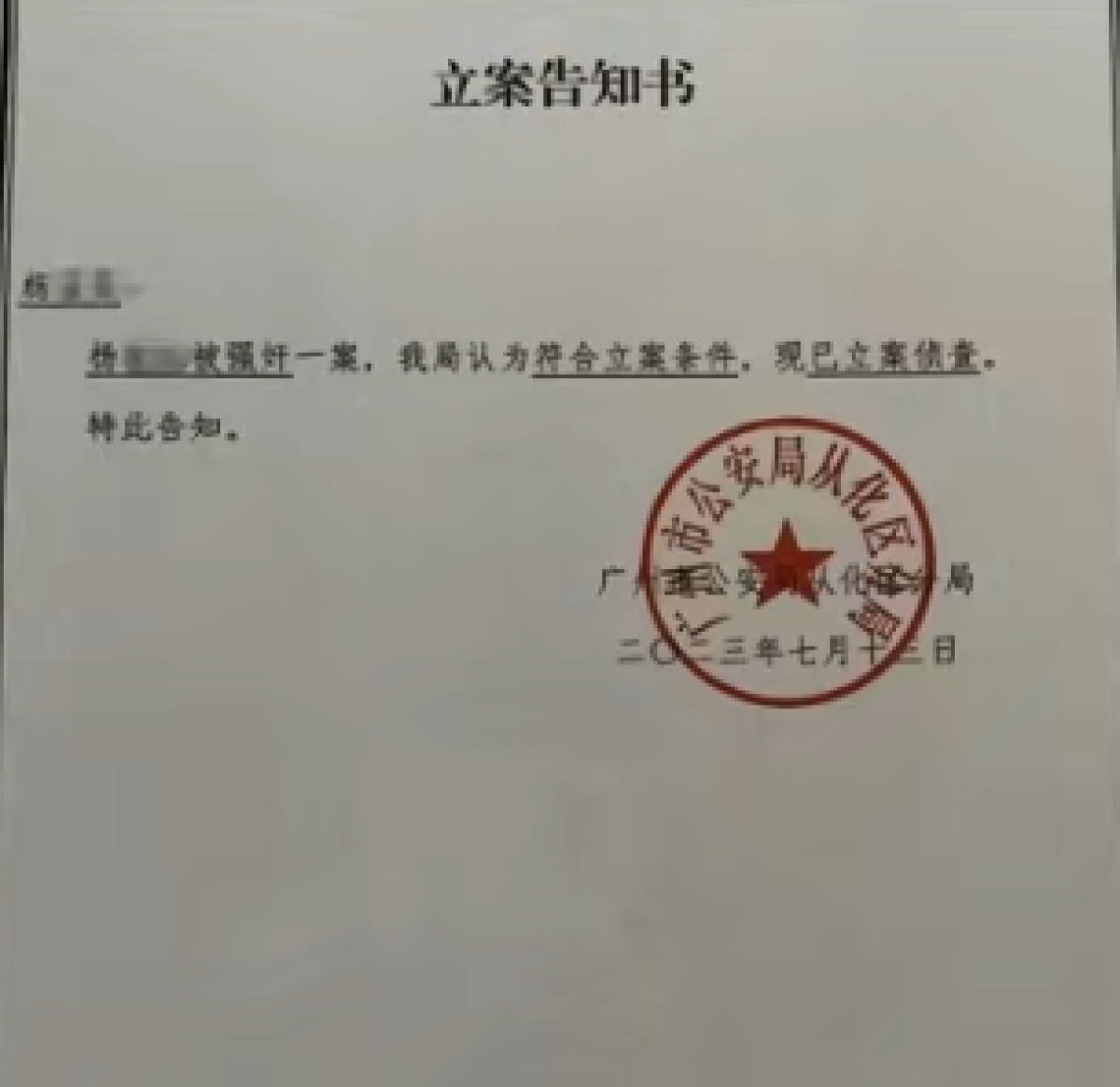 近日,网传“一女子反映被强奸后嫌疑人被取保放出”的信息引发公众关注,为还原事件真相,南都N视频记者向负责案件侦办的广州从化警方了解到:该信息关联2023年办理的一宗案件。2023年6月24日,从化警方接杨某(女,案发时38岁)报警称被其前夫曾某(男,案发时40岁)在从化区一酒店内强奸。警方于当日依法将曾某传唤至公安机关开展调查。经初步证据收集,2023年7月13日从化警方对曾某涉嫌强奸立案侦查,并于同日依法对曾某采取刑事拘留强制措施。