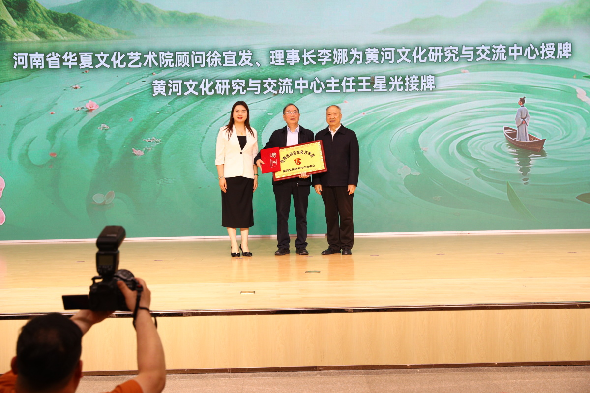 朗诵演出在激昂的国歌声中拉开帷幕。开场舞蹈灵动优美,尽显春日生机;随后,河南省华夏文化艺术院黄河文化研究与交流中心正式授牌,多位文化领域专家获聘任职,标志着黄河文化研究与传播工作迈入新阶段。