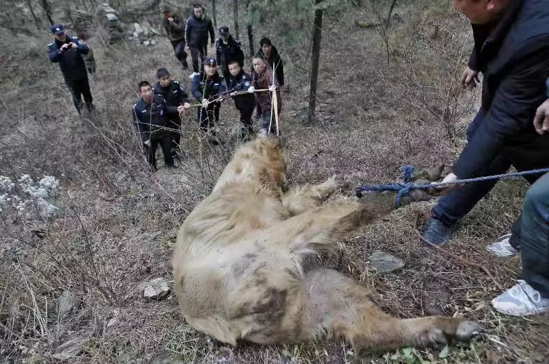 ▪这几天,一头金毛扭角羚在秦岭野羊沟附近,起初还能走来走去,这两天就静静卧着。担心羚牛的安危,附近村民和林业工作人员千方百计给羚牛喂食,并联系陕西省野生动物抢救中心施救。昨日,当地警方、动物保护专家、林业工作人员等20多人齐心协力把羚牛救下山。初步判断,这头金毛扭角羚可能是因为冬季食物不足,也有可能是老了跟不上队伍,落了单。随后将会接受全面检查,再针对性治疗。
