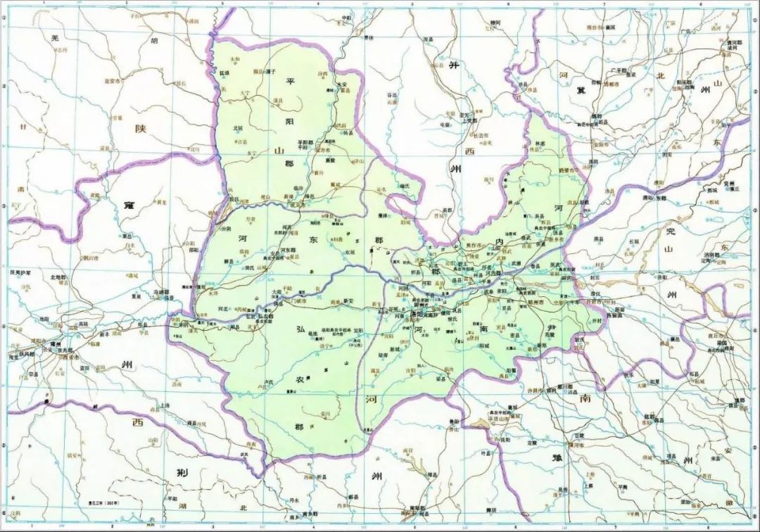 之所以要详细列出,是因为这是豫州第一次作为囊括河南大部的整体开始出现,包括了洛阳一带的河南郡、弘农郡、荥阳郡,也包括了南阳。这是豫大于河南的时候。