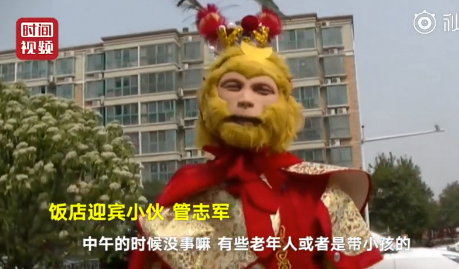视频丨暖心!郑州男子扮美猴王迎宾,休息时还帮老年人过马路