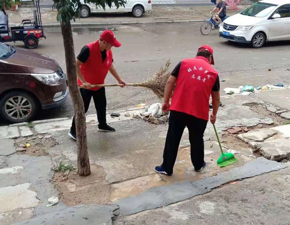 张庄办事处组织“绿城啄木鸟”志愿者整治雨后辖区环境,共创整洁家园