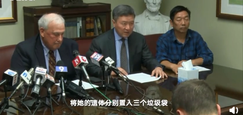 8月7日,美国,章莹颖家人及律师召开发布会。律师称,凶手将章莹颖的尸体置入三个垃圾袋,倒入公寓外垃圾桶。这些垃圾被转运至私人垃圾填埋场,其间被压缩至少2次,因此章莹颖遗骸体积可能小于一部手机。