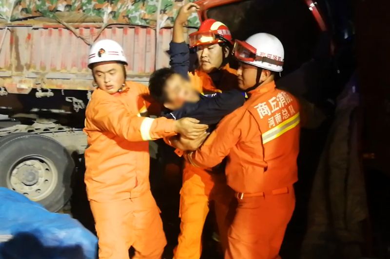 救援人员立即调整营救方案,由一位身材瘦小的救援员进入驾驶室内进行救援,经过10分钟的努力,被困男子被成功救出,随后又将困在车后箱的女子救出并送上救护车。