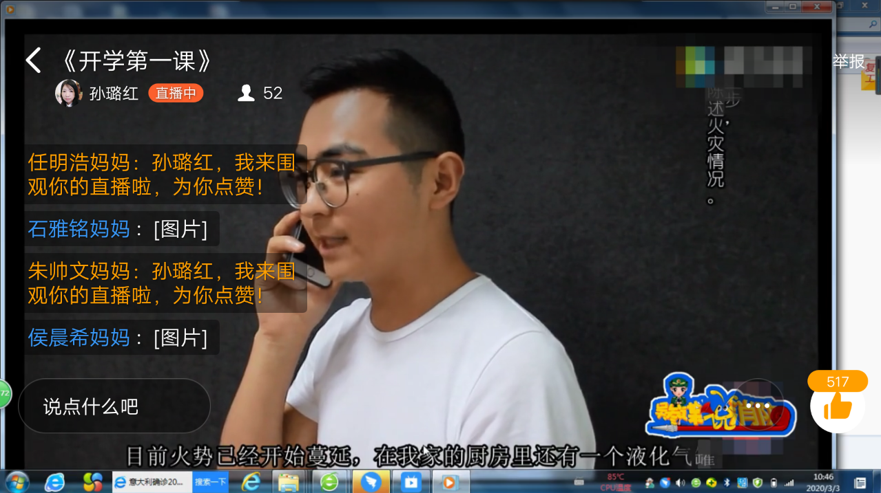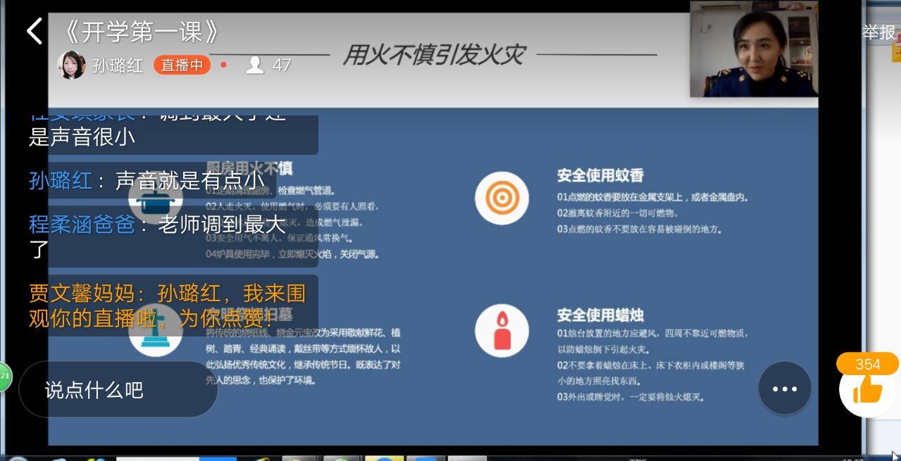 疫情期间“停课不停学”,学生居家通过学校网络直播进行学习。为了确保学生居家学习的安全,普及家庭防火安全知识,增强居家防火安全意识和应急自救能力。2020年3月3日下午,郑州市惠济区师家河小学通过网络直播课堂组织学生进行了《开学第一课“日常防火安全知识”》培训学习。