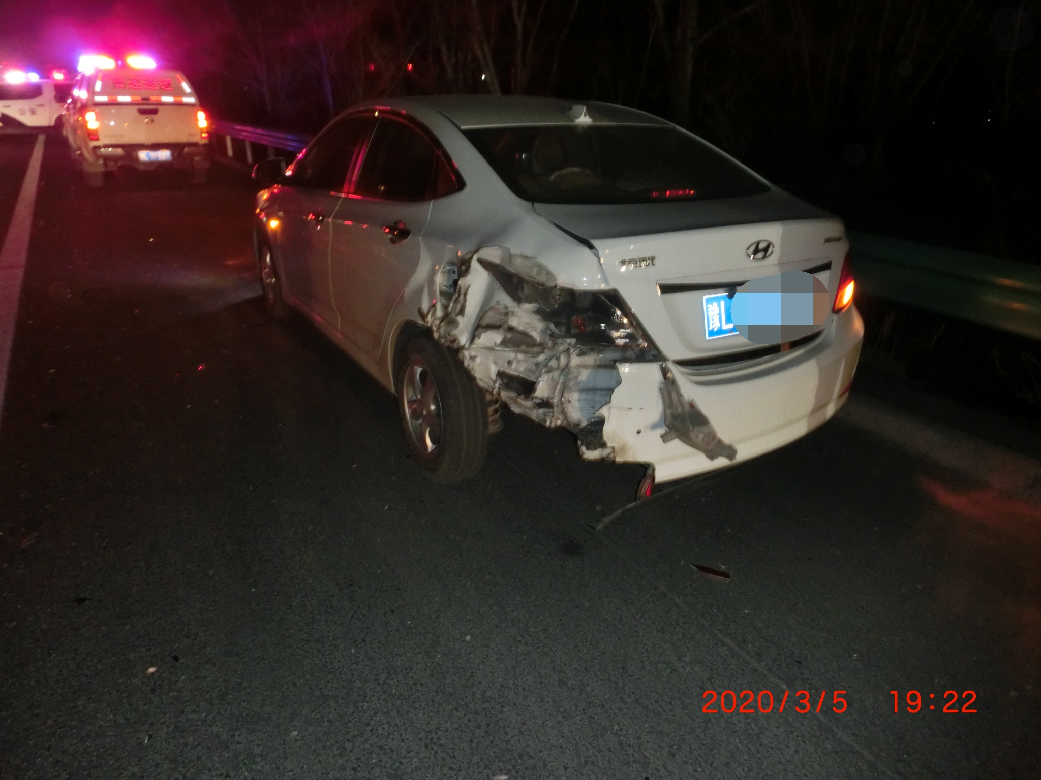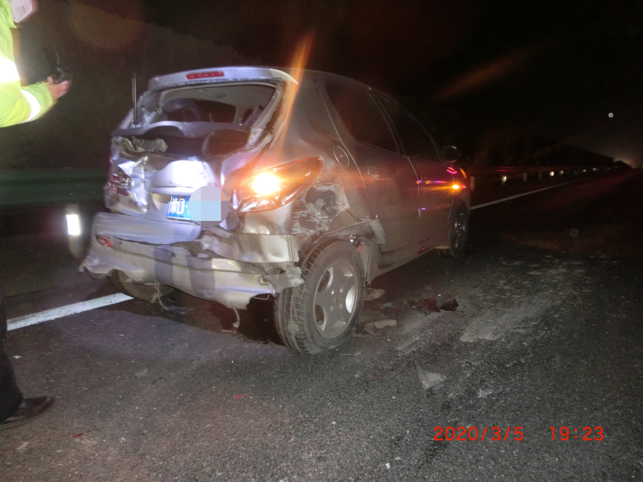 据豫L牌照的大货车司机说,他当时正常在行车道上行驶,当快要接近舞阳出口时,行驶在超车道上豫L牌照的小轿车突然往右打了一把方向停在行车道上,吓得他赶紧向超车道上急打方向,挂车尾部刮擦到轿车左后部,又与超车道上的豫D牌照轿车追尾,万幸的是没有人员受伤。