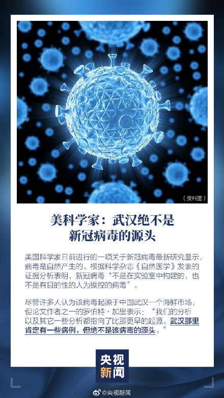 ⊙美国科学家称武汉绝不是新冠病毒源头