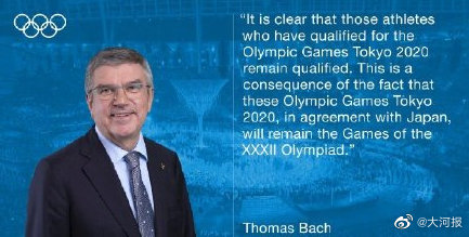 29日,国际奥委会在其社交媒体上发布信息,国际奥委会主席巴赫说,已经获得奥运资格的选手将继续保留奥运会参赛资格。