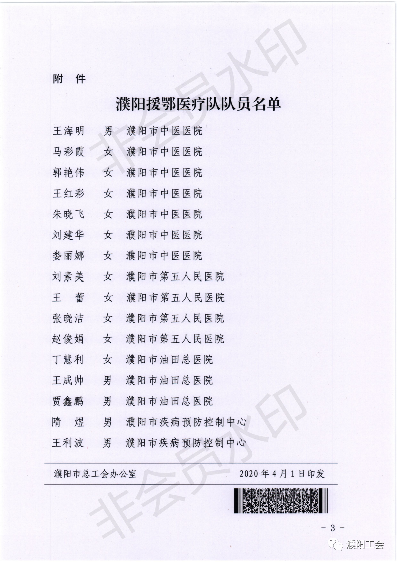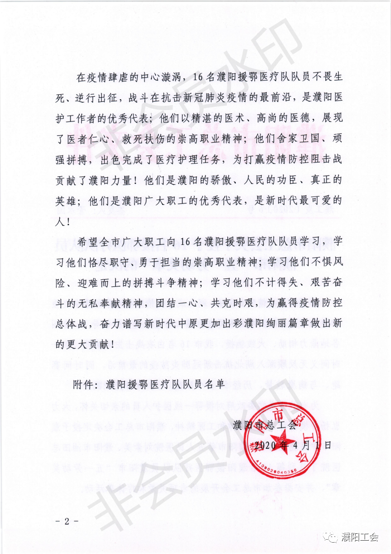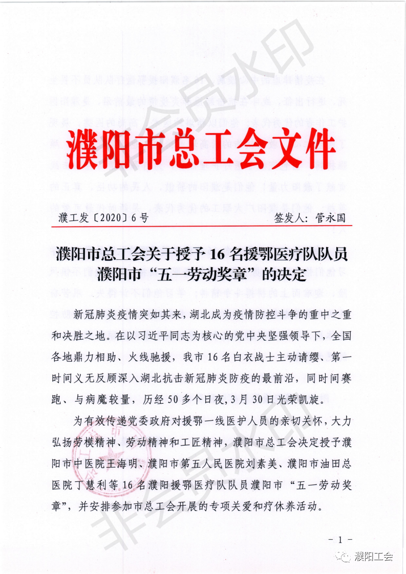 濮阳市总工会发布关于授予16名援鄂医疗队队员 濮阳市“五一劳动奖章”的决定。