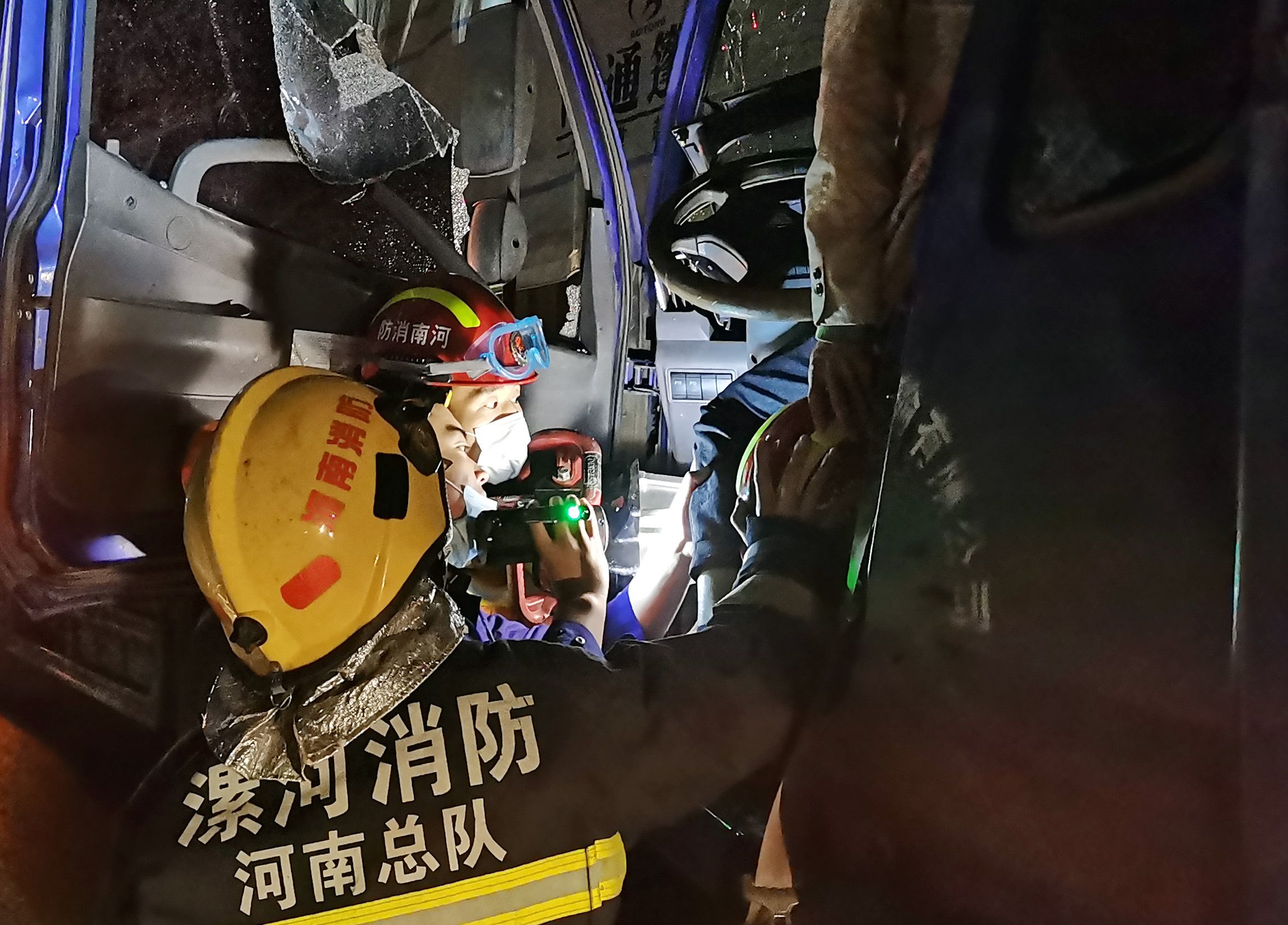 近期河南境内温度骤降,特别是在午夜时分,昼夜温差非常大。顶着凌厉的寒风,指战员在2处救援现场与时间赛跑,与死神抢生命。救援中,面对伤员微弱的呻吟声,消防员一边操作特勤器材,一边用言语安慰,鼓励他们坚强起来,不要睡去。终于,4月10日凌晨零点07分,第二名伤员被救出;凌晨零点41分,第三名伤员被救出。
