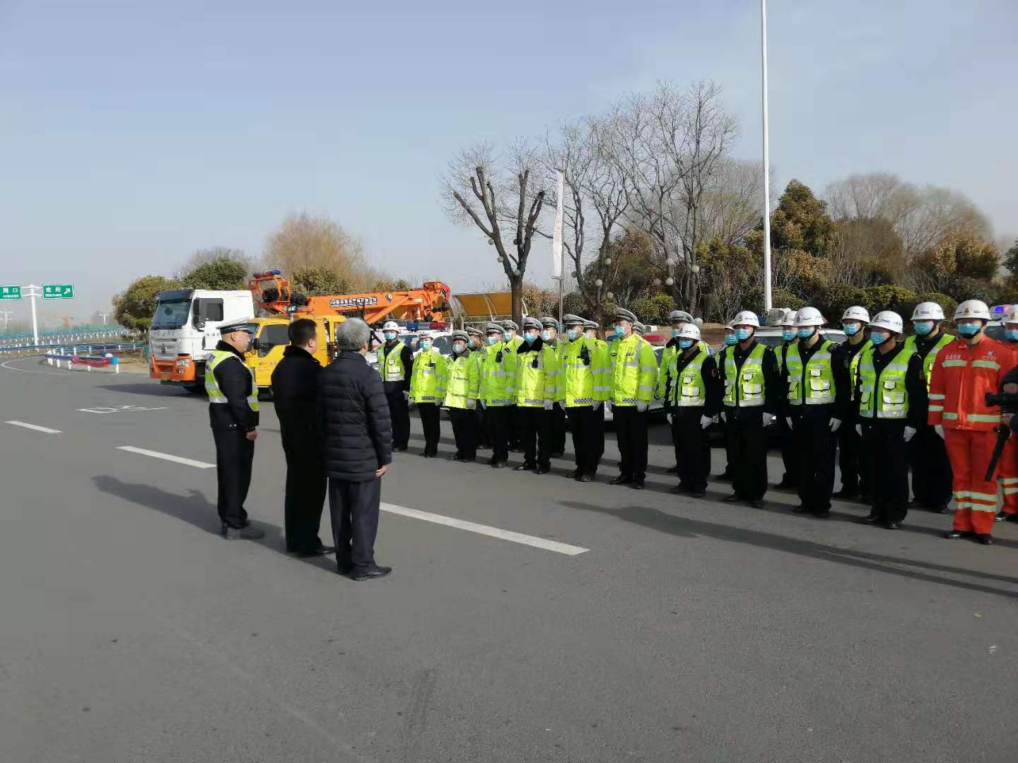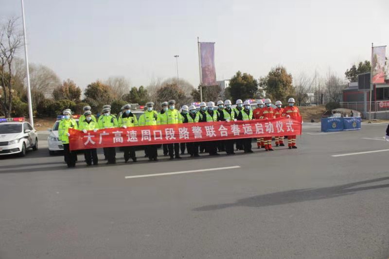 2021年春运从1月28日开始至3月8日结束,历时40天。为保障2021年春运期间辖区高速公路安全、有序、畅通,为广大人民群众欢度春节创造良好的交通环境,1月28日,周口市公安局交通管理支队大广高速交警联合高速路政、抢险救援等部门在大广高速公路周口东站前广场举办了“2021年大广高速路警联合春运启动仪式”,根据周口市举办活动时疫情防控要求,仪式主要有部门负责同志及代表等30余人参加。