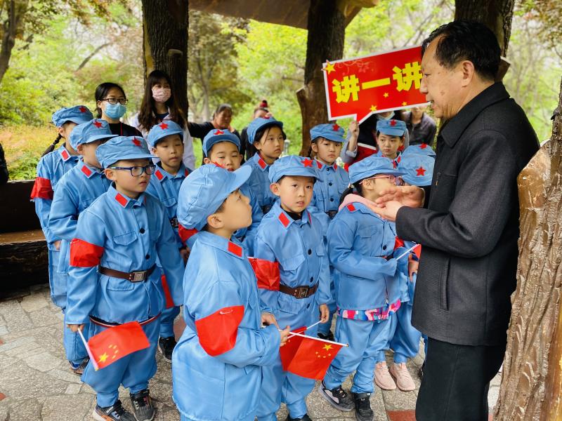 古朴的凉亭是今天打卡活动第二站“讲一讲”。老党员夏金良曾经是一名军人,他生动的给孩子讲起了抗美援朝保家卫国的故事。现在的美好生活是革命先烈用生命换来的,学习历史,尊敬先烈,懂得感恩,一字一句孩子都听在耳中,记在心里。