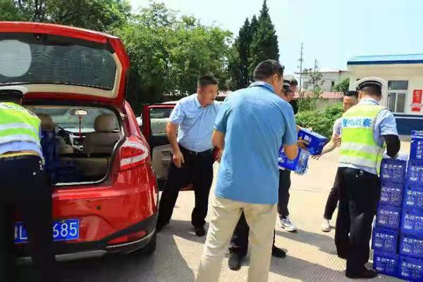 “寒有三九,热有三伏。高温酷暑之下,你们始终奋战在道路一线,用辛勤的汗水换来交通的顺畅和市民的出行平安,真的辛苦了!这些矿泉水、牛奶、方便面是我们力所能及的一点点心意,请务必收下。”7月13日,源汇区总商会代表为漯河市公安局交通管理支队源汇大队民警送上防暑慰问品,以表达对交警工作的赞赏和支持。
