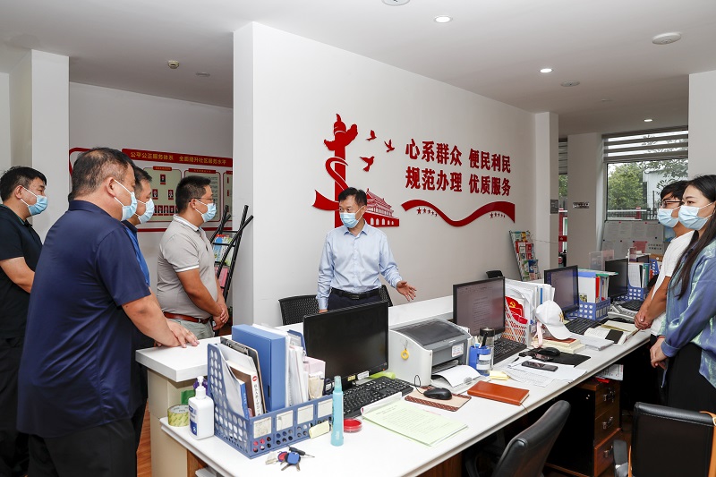 随后,孙建功一行来到永平路社区,听取了社区建设情况汇报。孙建功指出,社区离群众最近,要紧贴群众需求,在做好业务服务的基础上,同时做好群众与政府职能部门的桥梁纽带,让社区成为群众最放心的港湾。