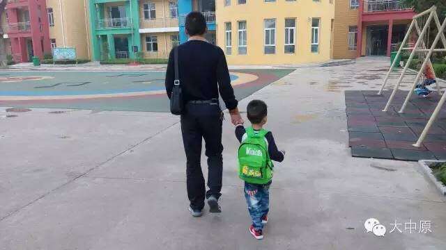霍希峰难得有时间送孩子上学,妻子在身后偷偷拍下他的背影,成为永恒的记忆。